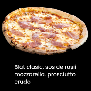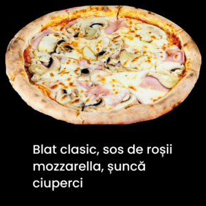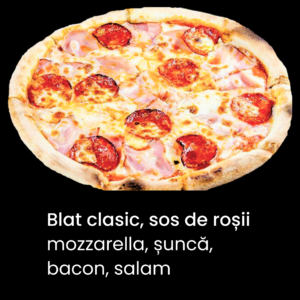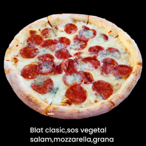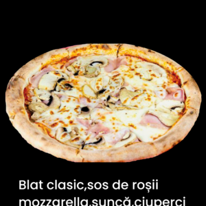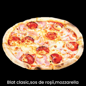 Blat de pizza clasic,sos de rosii,mozzarella,salam,sunca,ciuperci,ceapa,ardei,masline